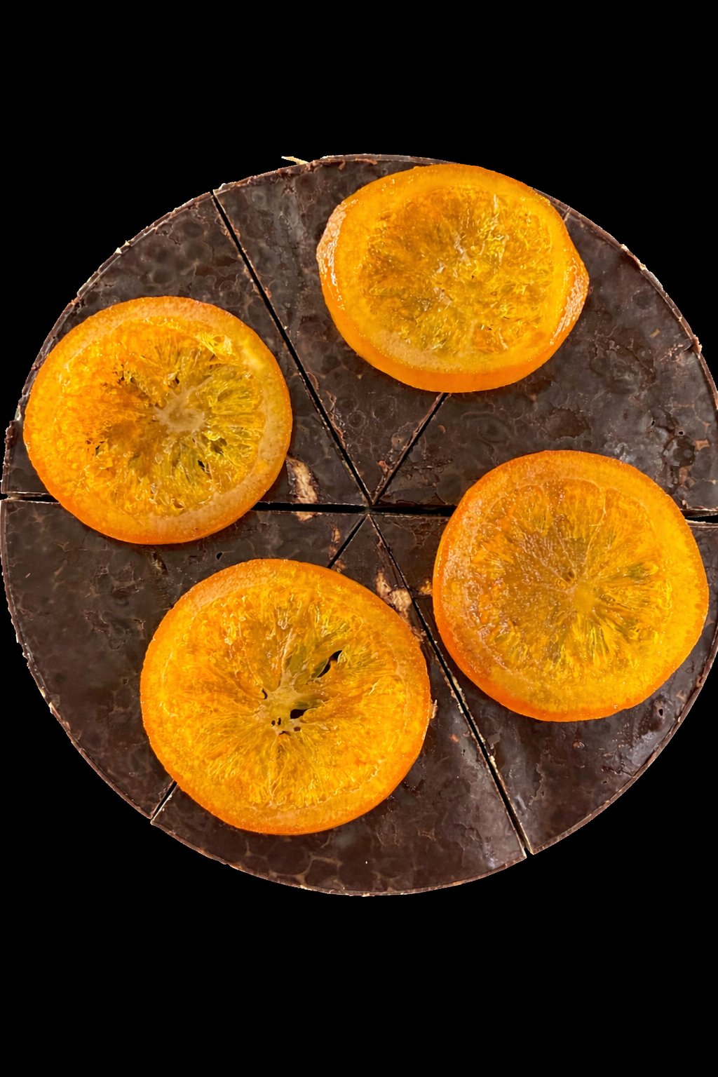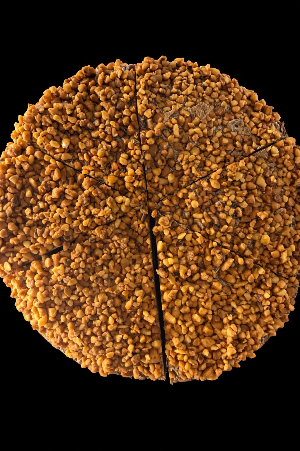 800gr Βάση μπισκότο σοκολάτας με κρέμα βανίλιας, μους καραμέλας, και επικάλυψη καραμέλα