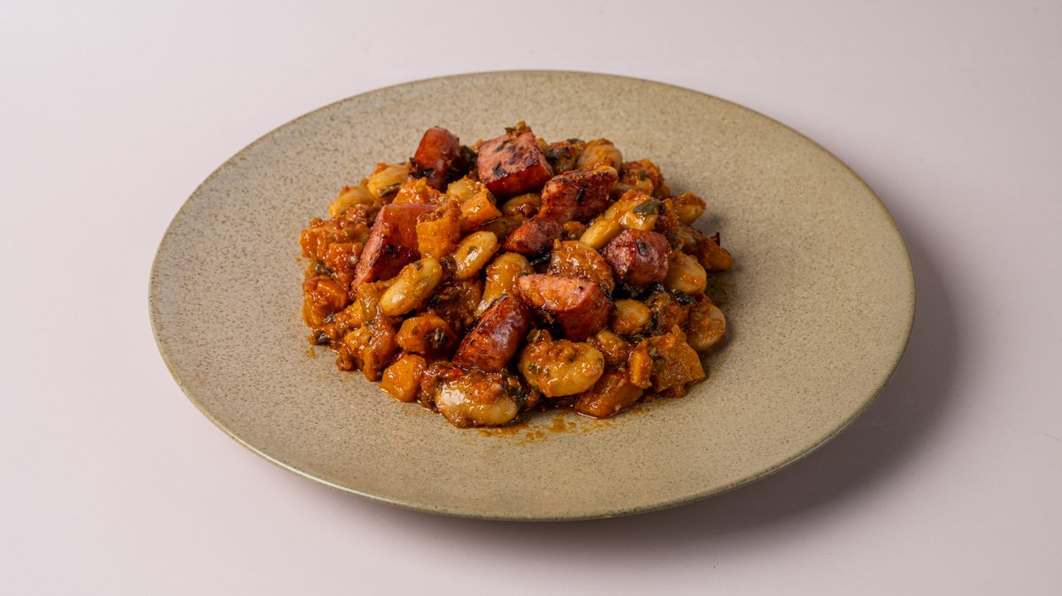 Γίγαντες Φούρνου με Λουκάνικο Χωριάτικο