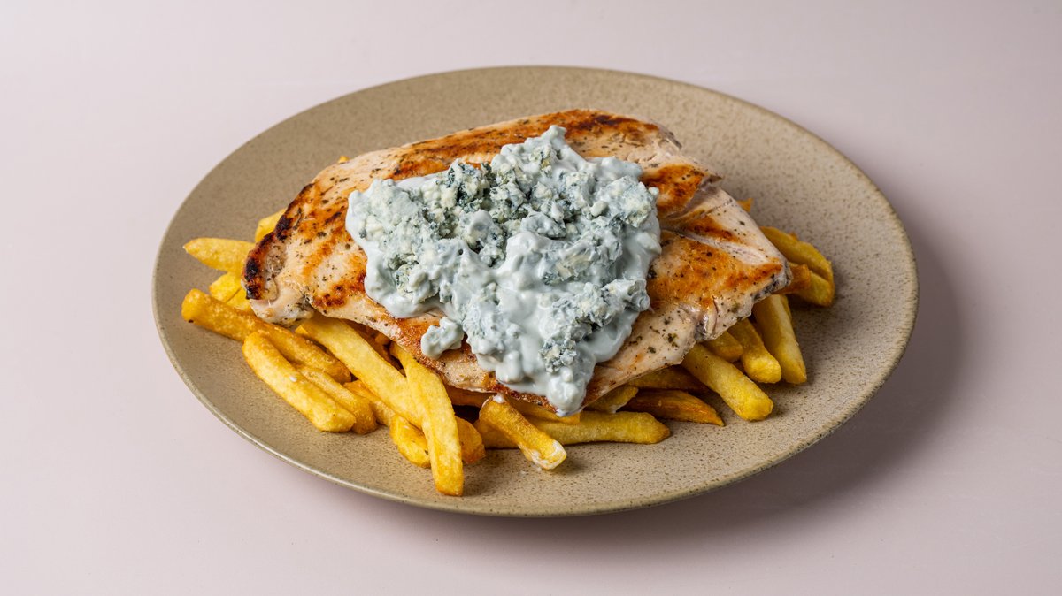 Φιλέτο Κοτόπουλου σχάρας (Στήθος ή Μπούτι) με σάλτσα Ροκφόρ και το συνοδευτικό της επιλογής σου