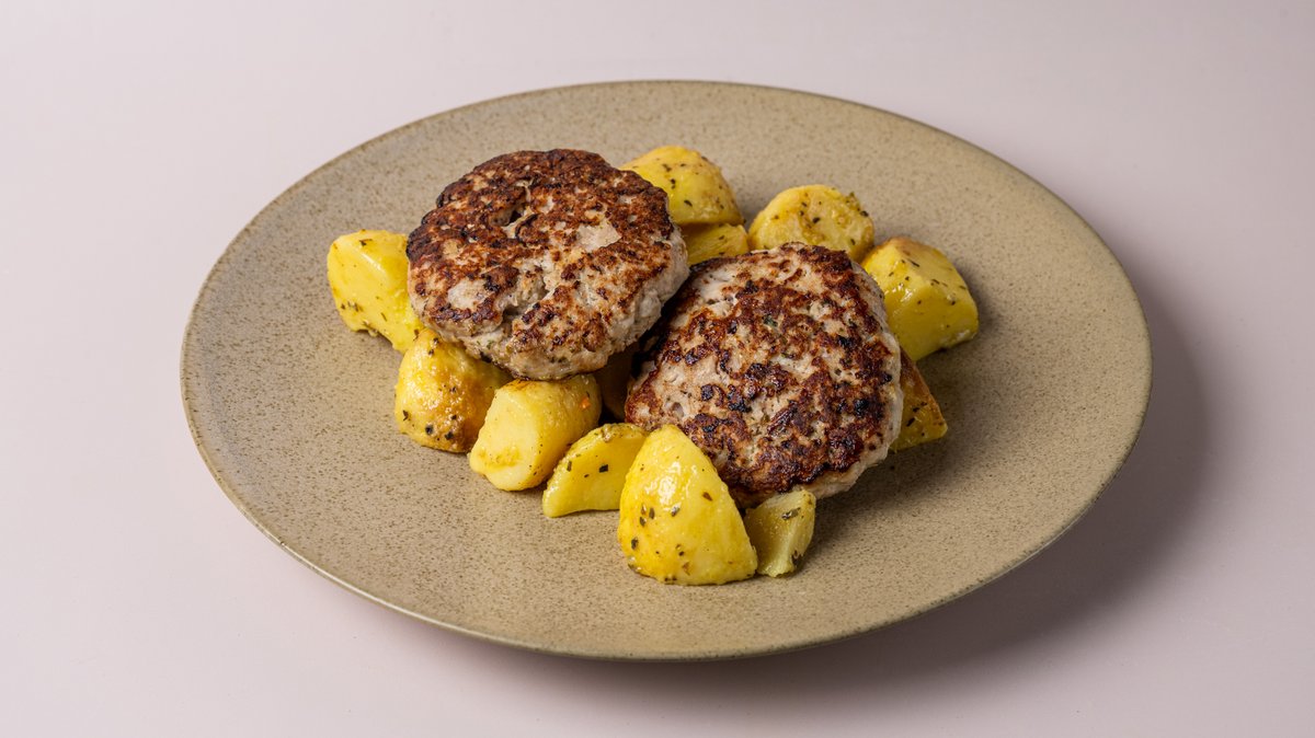 Μπιφτέκια κοτόπουλου (2 τμχ) στο φούρνο, με συνοδευτικό της επιλογής σου