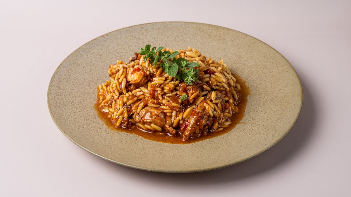 Φιλέτο Κοτόπουλου κοκκινιστό, με κριθαράκι στο φούρνο