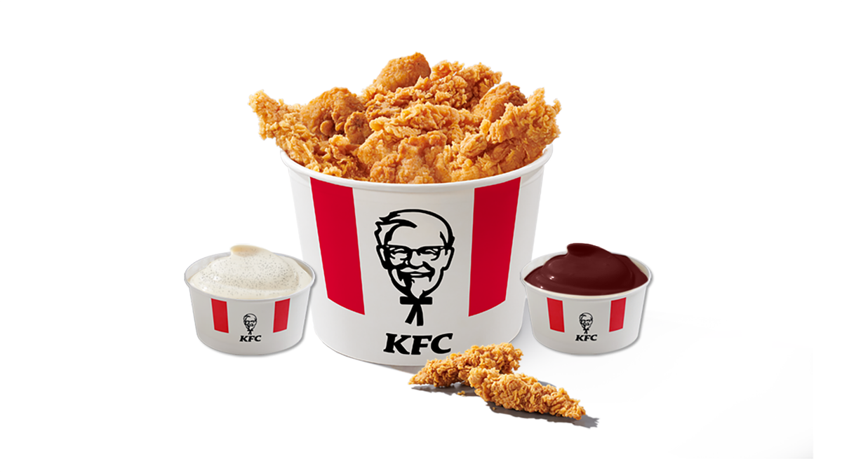 1 Bucket Boneless (8 crispy Strips + 14 nuggets) ή Duo (10 hot wings + 8 crispy strips) + 2 Fillet/ Zinger Burgers + 2 Medium Fries