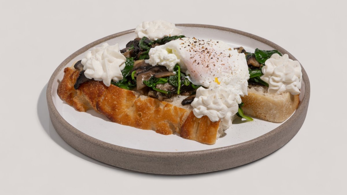 Μανιτάρια Porto Bello και baby spinach σοτε,ricotta cheese, αυγο ποσε και λάδι τρούφας.