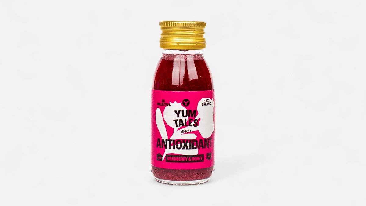 100% οργανικό σφηνάκι ενέργειας με φυσικό γλυκαντικό από μέλι και την αντιοξειδωτική δύναμη του cranberry.