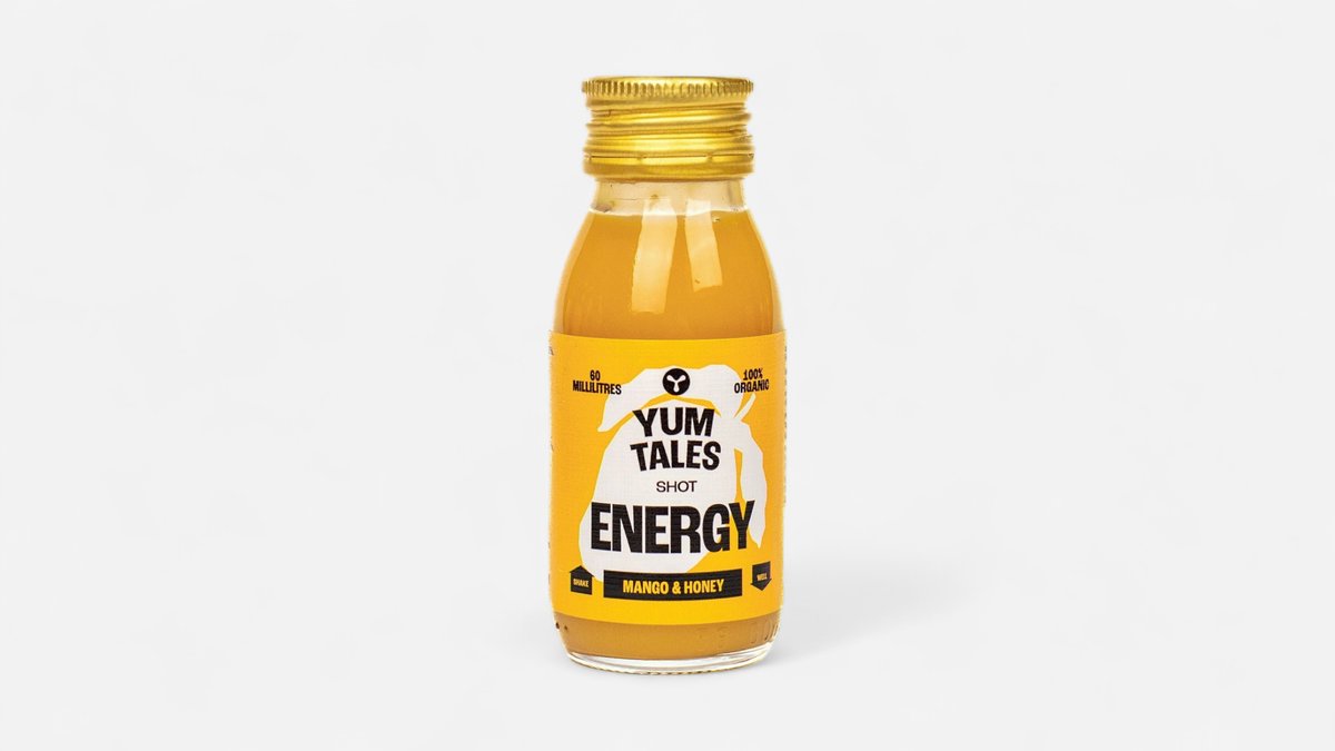100% οργανικό σφηνάκι ενέργειας με φυσικό γλυκαντικό από μέλι και πλούσιες βιταμίνες από μάνγκο.