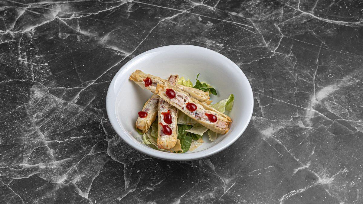 With lettuce leaves, baby spinach, cherry tomatoes, argula, smoked pancetta, variety of mushrooms, Florina red pepper, mustard vinaigrette and Epirus cheese cream