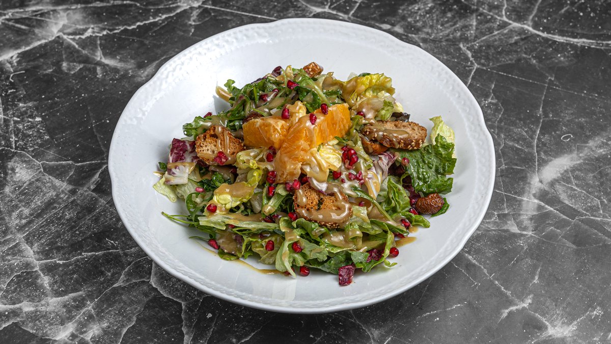 Mixed vegetables, orange fillet, pomegranate, dried figs, koulouri, citrus vinaigrette