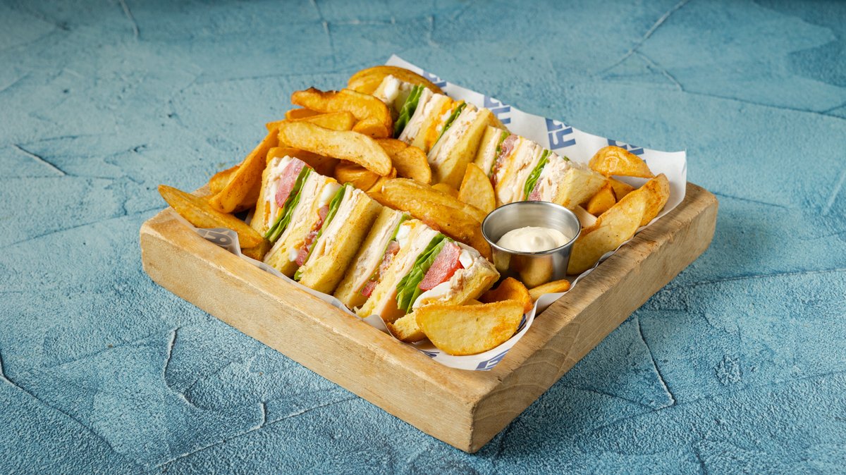 Με κοτόπουλο, bacon, τυρί, γαλοπούλα, μαρούλι, ντομάτα και μαγιονέζα. Συνοδεύεται από πατάτες τηγανητές ή πράσινη σαλάτα