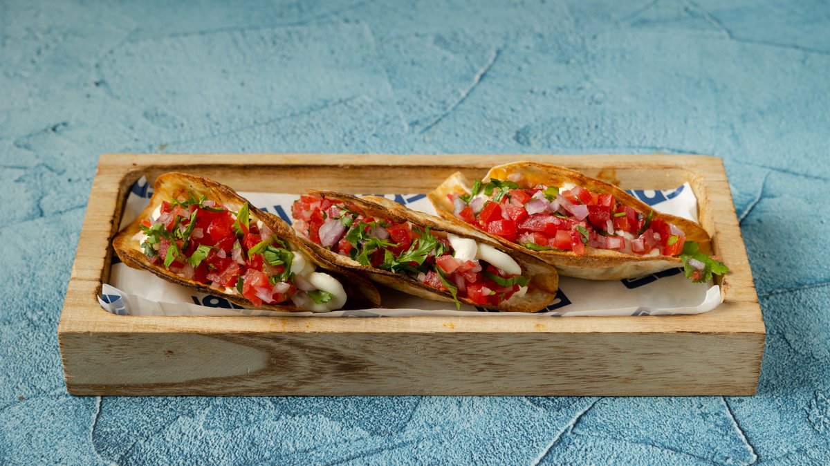 Τσιπς τορτίγιας, guacamole, red pepper salsa και pico de gallo