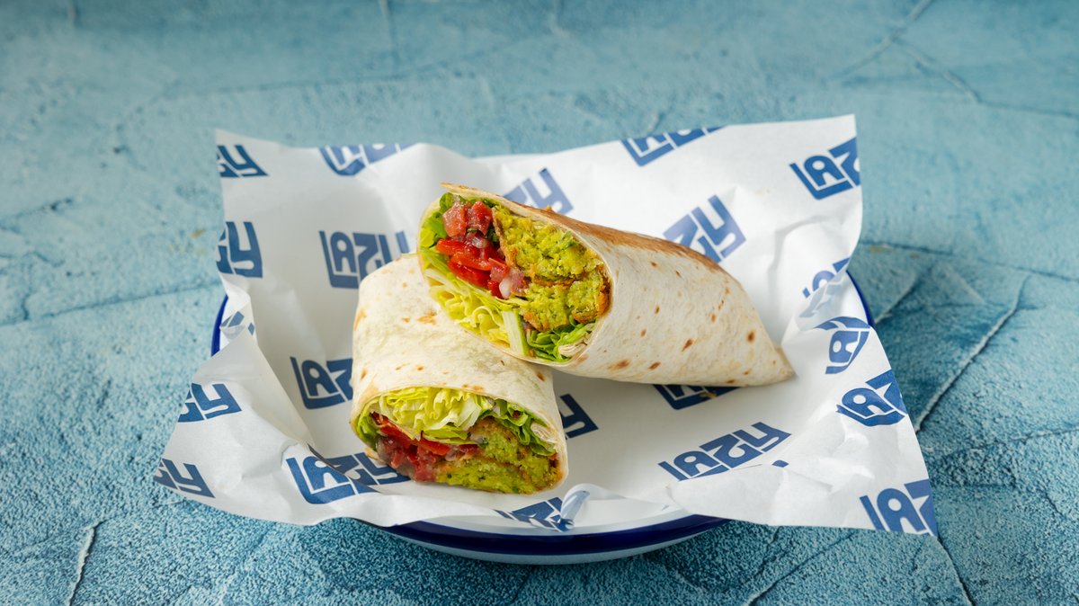 Με φαλάφελ, iceberg, ψητή πιπεριά Φλωρίνης, pico de gallo και caper mustard sauce