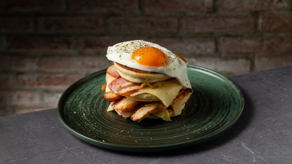 Pancakes Gouda, Μπέικον και Αυγό Τηγανητό