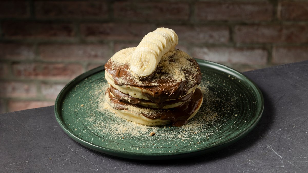 Pancakes Πραλίνα Φουντουκιού, Μπισκότο Τριμμένο και Μπανάνα Φρούτο
