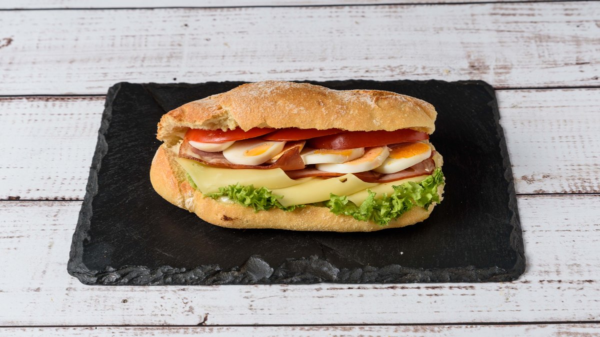 With Gouda, ham, and bacon