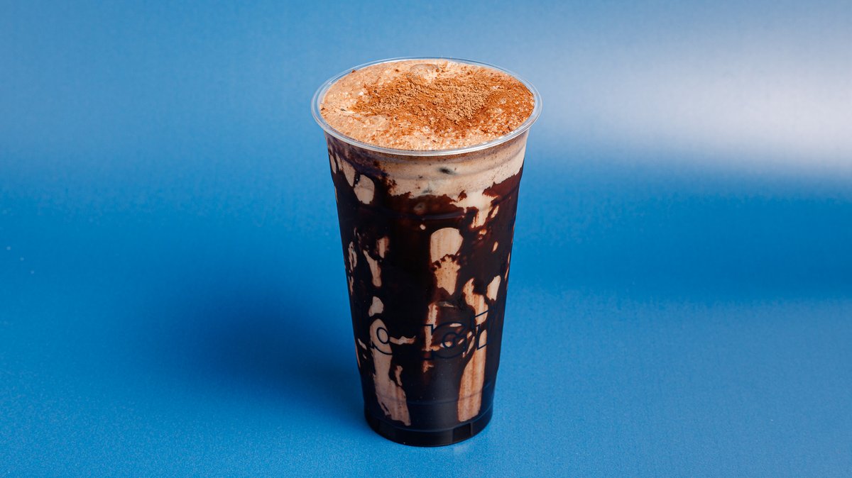 Black cacao, coffee, Lotus cookie, sugar cream, oat milk
