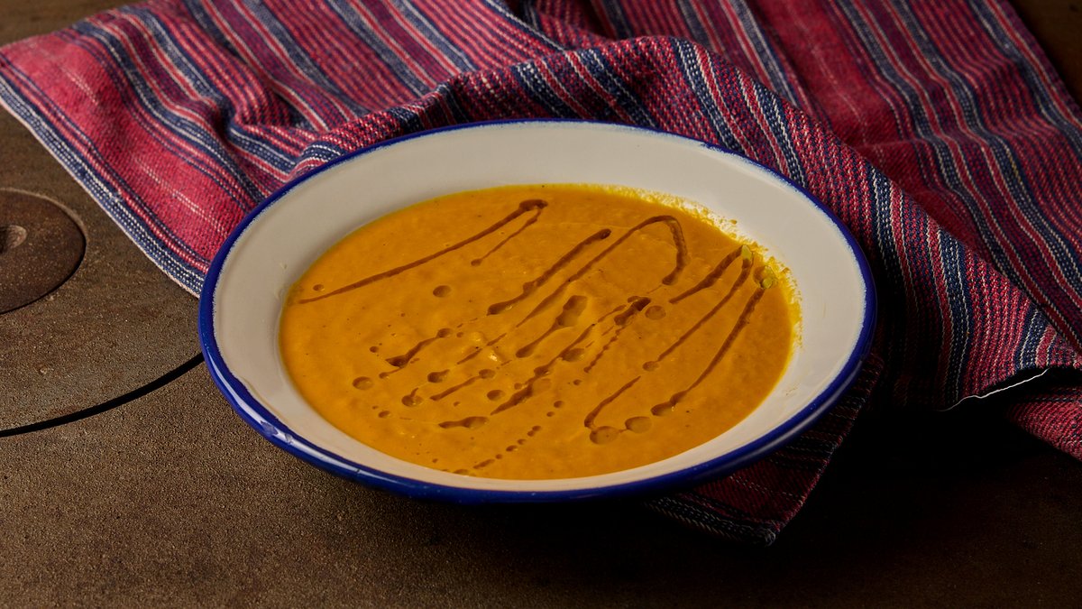 Με καρότο , ginger , κρεμμύδι, κρουτόν και λάδι πορτοκαλιού