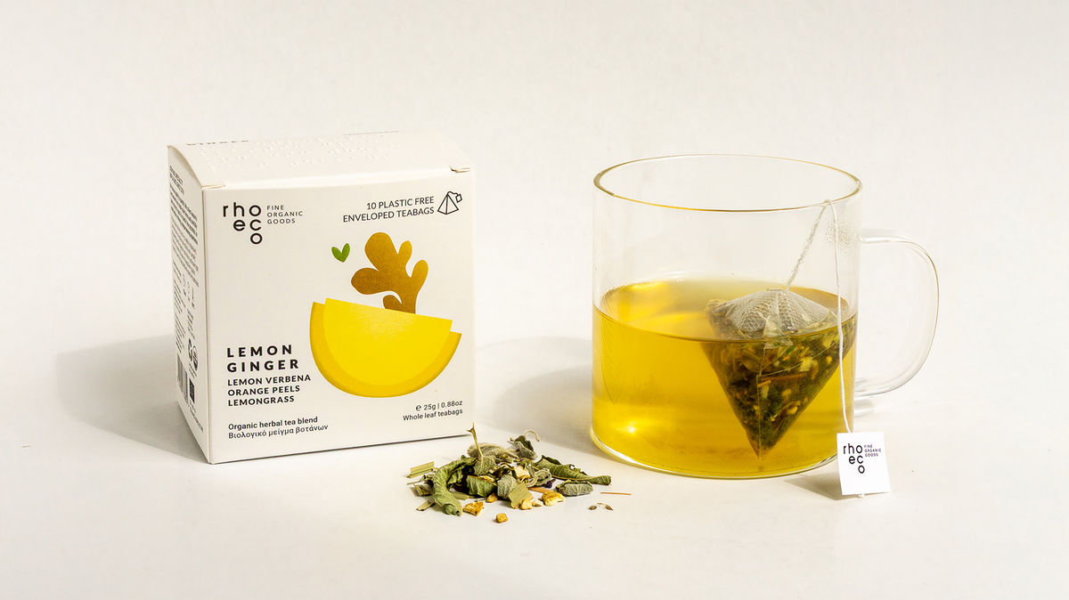 10 Oικολογικές πυραμίδες [teabag] σε ατομικές μερίδες Ένα ζεστό άγγιγμα ανανέωσης. Ανακαλύψτε το νέο μας μείγμα Lemon Ginger, έναν αρωματικό συνδυασμό από τζίντζερ και λεμονόχορτο που ξυπνά τις αισθήσεις και προσφέρει φυσική ευεξία. Η φρεσκάδα του λεμονιού παντρεύεται αρμονικά με τις θερμαντικές νότες του τζίντζερ, ενώ το φασκόμηλο, ο ύσσωπος και η λουίζα χαρίζουν βάθος και ισορροπία. Οι φλούδες πορτοκαλιού ολοκληρώνουν το προφίλ με μία ανάλαφρη γλυκύτητα. Ιδανικό για κάθε στιγμή της ημέρας — ζεστό ή παγωμένο — το Lemon Ginger είναι ένα ρόφημα που αναζωογονεί το σώμα και το πνεύμα. Συστατικά: Τζίντζερ*, Λεμονόχορτο*, Φλούδες πορτοκαλιού*, Ύσσωπος*, Φασκόμηλο*, Λουίζα* *Προϊόν βιολογικής γεωργίας Νότες: Δροσερά, ντελικάτα αρώματα λεμονιού, ελαφρύ σώμα και ήπια πικάντικη επίγευση τζίντζερ. Κύρια χαρακτηριστικά: Δυναμωτικό και τονωτικό.