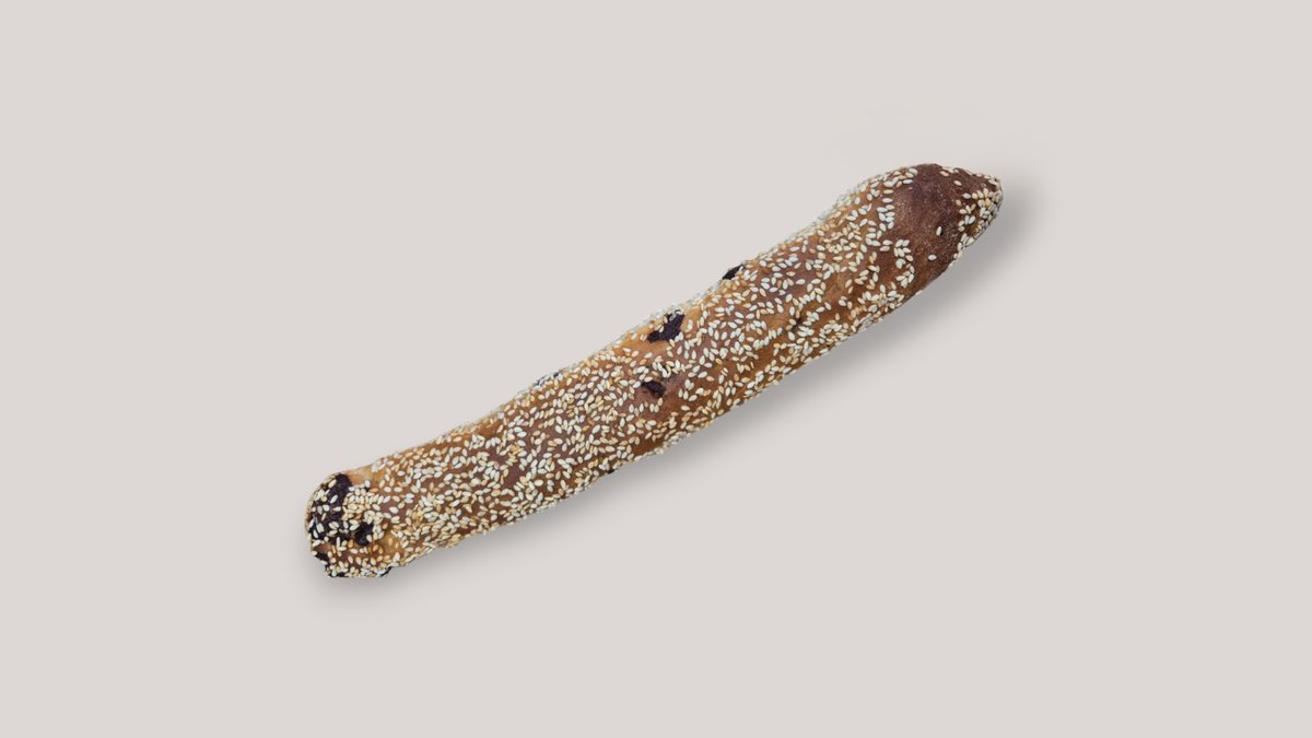 ~300 g Κλασική γαλλική μπαγκέτα με ελαφρύ άρωμα σουσαμιού. Τραγανή κόρα, αφράτη ψίχα, διακριτικά ελληνικό twist.