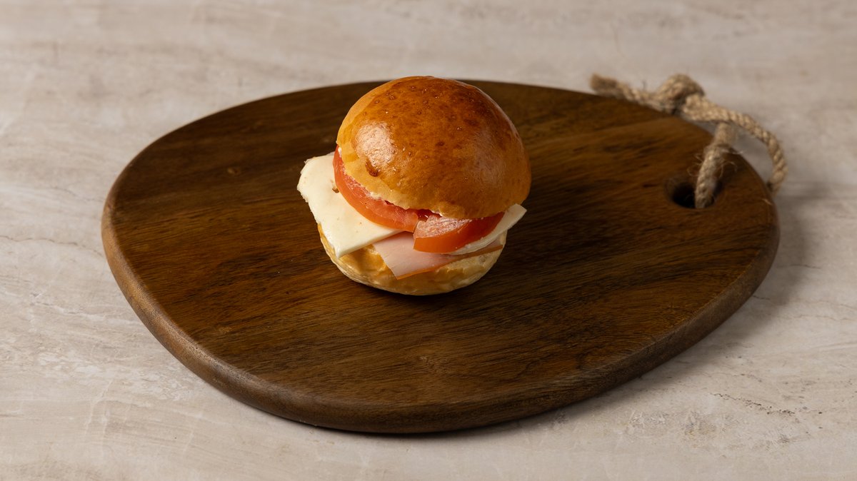 Αφράτο brioche, καπνιστή γαλοπούλα, gouda και honey mustard σως