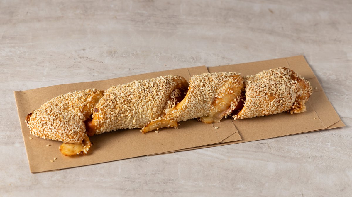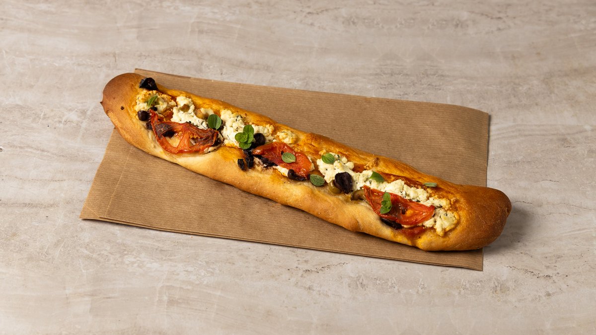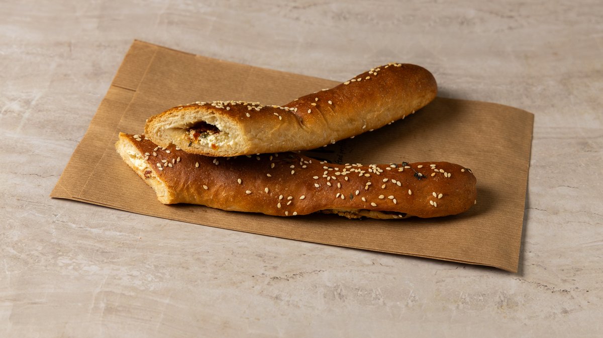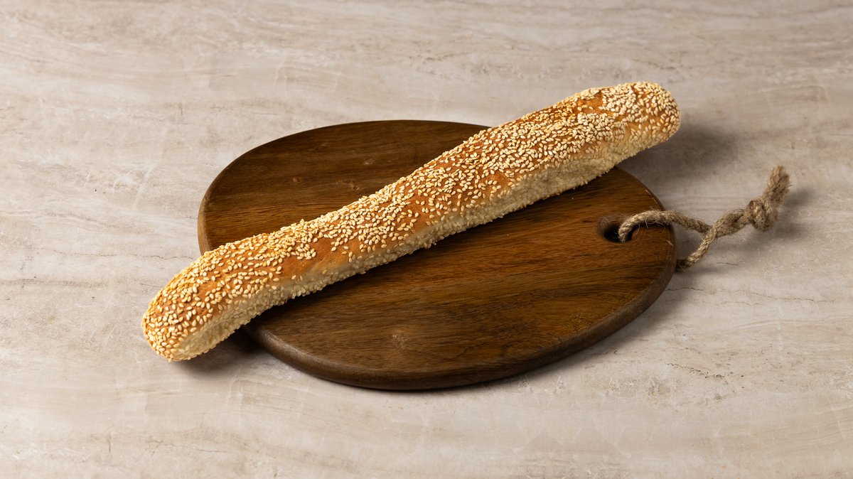~300 g Κλασική γαλλική μπαγκέτα με ελαφρύ άρωμα σουσαμιού. Τραγανή κόρα, αφράτη ψίχα, διακριτικά ελληνικό twist.