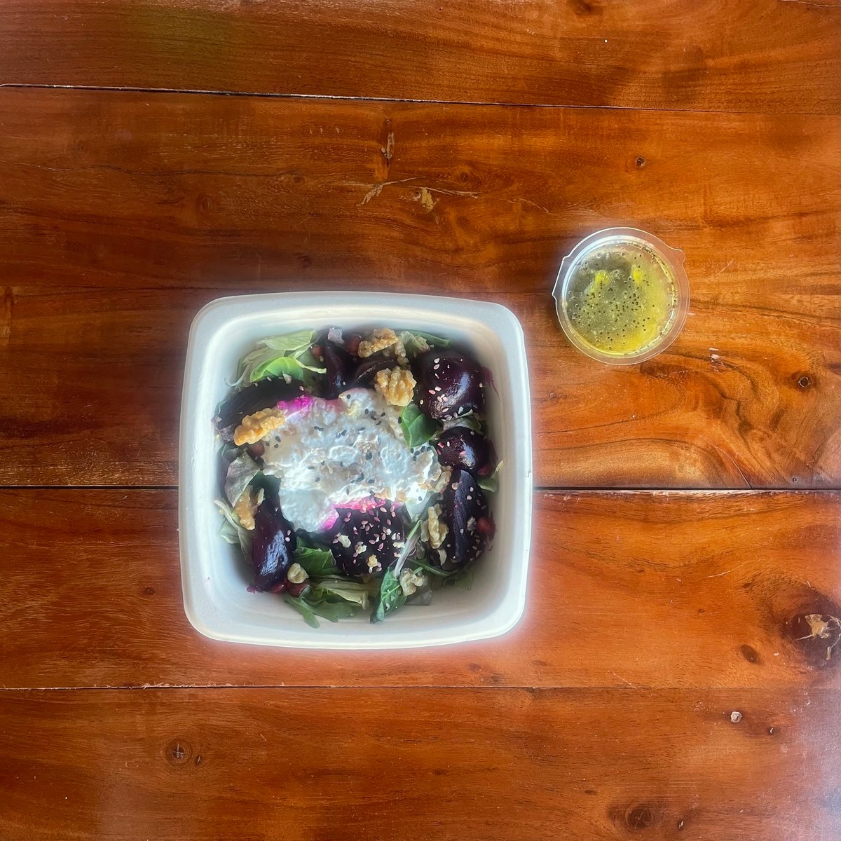 Ανάμεικτα σαλατικά με παντζάρι, καρύδι, ρόδι, κατίκι Δομοκού και σουσάμι