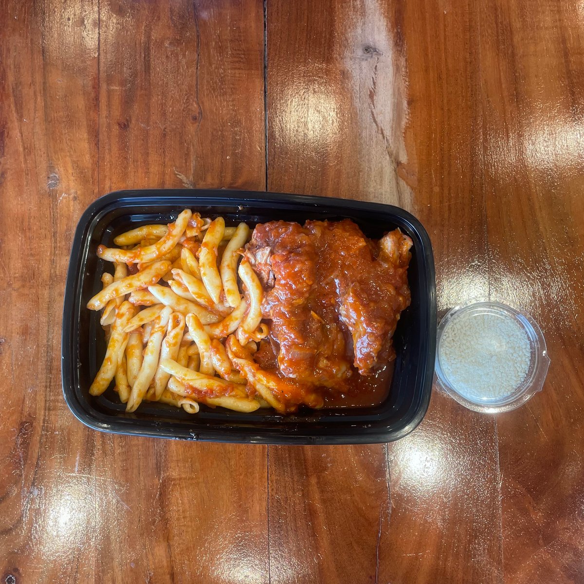 Μοσχαράκι γάστρας με αρωματική σάλτσα κρασιού και συνοδευτικό της επιλογής σας
