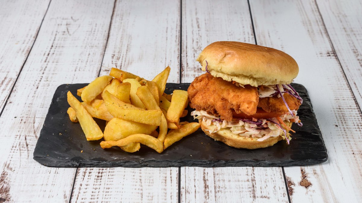 Ψωμάκι brioche με τραγανό φιλέτο κοτόπουλο παναρισμένο με panko, coleslaw, ντομάτα και sauce cocktail