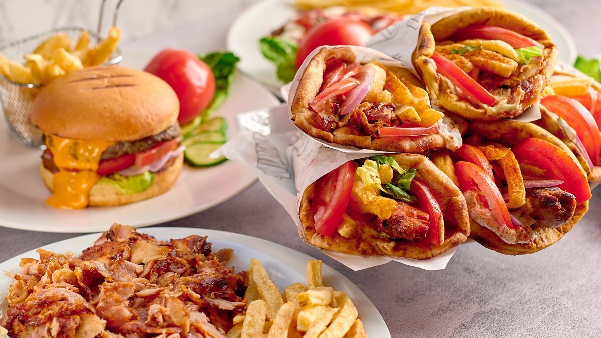 Με γύρο χοιρινό, διπλό μπέικον, διπλό τυρί, ντομάτα και σως. Συνοδεύεται από πατάτες