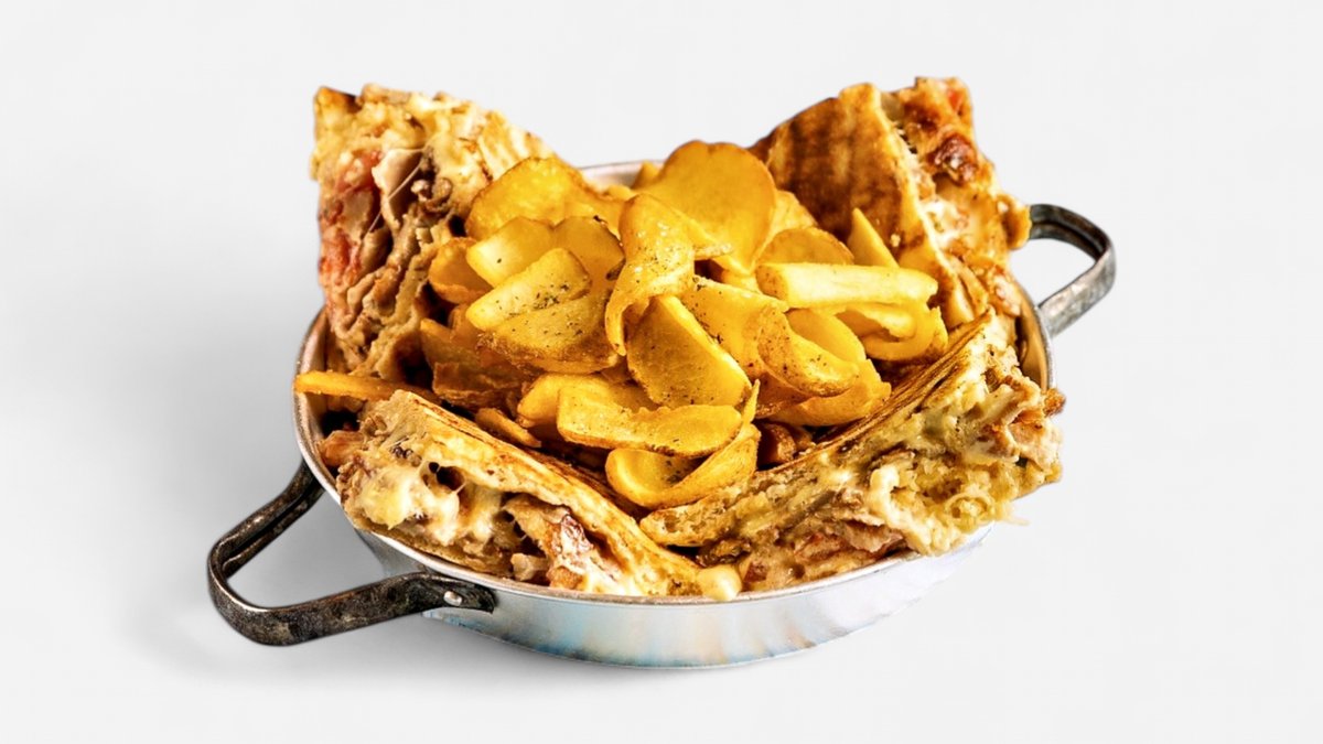 Με gouda, ντομάτα και σως milf ή τα υλικά της επιλογής σου. Συνοδεύεται από πατάτες τηγανητές