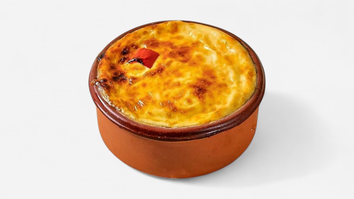 Συνοδεύεται από πίτα, πατάτες τηγανητές, πολίτικη σαλάτα και τζατζίκι