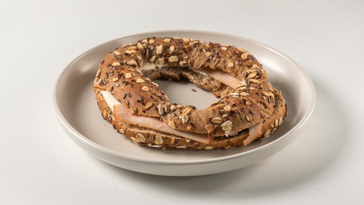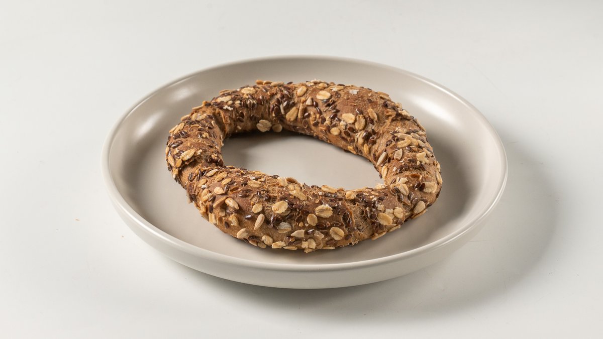 Ψωμί με αλεύρι δίκοκκο ολικής άλεσης, σίκαλης, σταρένιο λευκό τύπου 55%, βρασμένους σπόρους ηλιόσπορου, λιναρόσπορου, κολοκυθόσπορου, βρώμης και φυσικό προζύμι σίκαλης