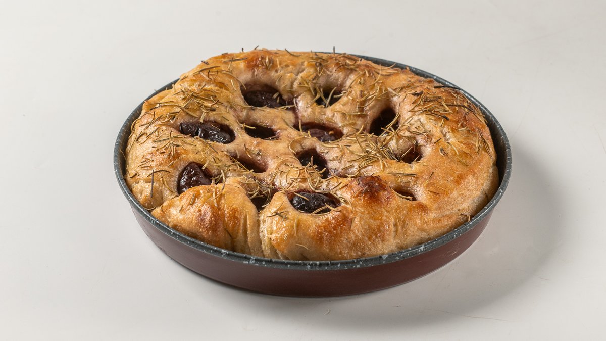 Φοκάτσια αργής ωρίμασης με προζύμι,ελαιόλαδο και ελιές