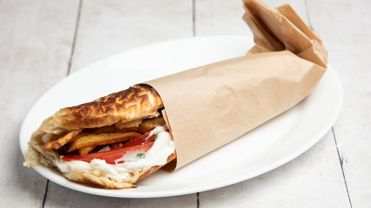 Με 2 πίτες, ντομάτα και κρεμμύδι
