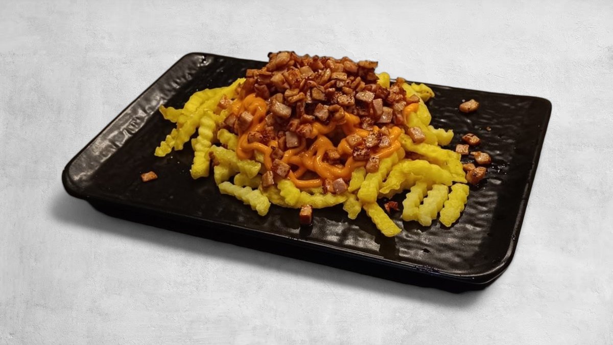 Tηγανητές Πατάτες Crinkle με Cheddar και Μπέικον