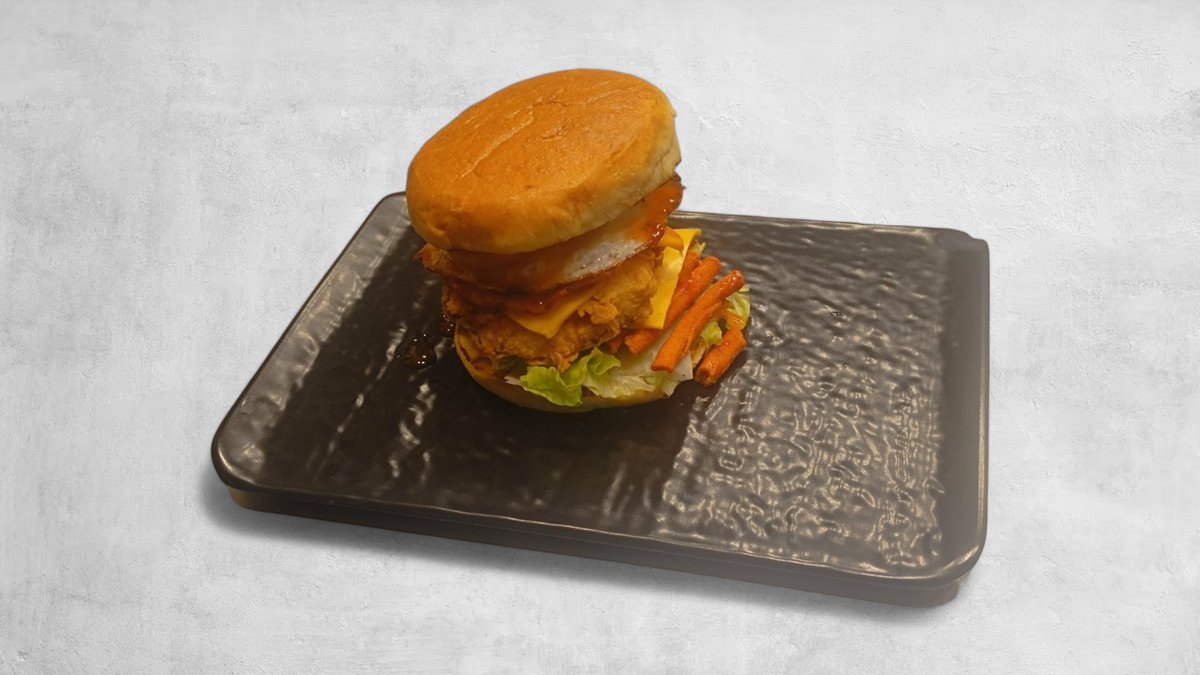 Ψωμάκι toast Brioche, 100% φιλέτο κοτόπουλο πανέ, cheddar, iceberg, bacon, ντομάτα, μαγιονέζα.Συνοδεύεται από πατάτες τηγανητές