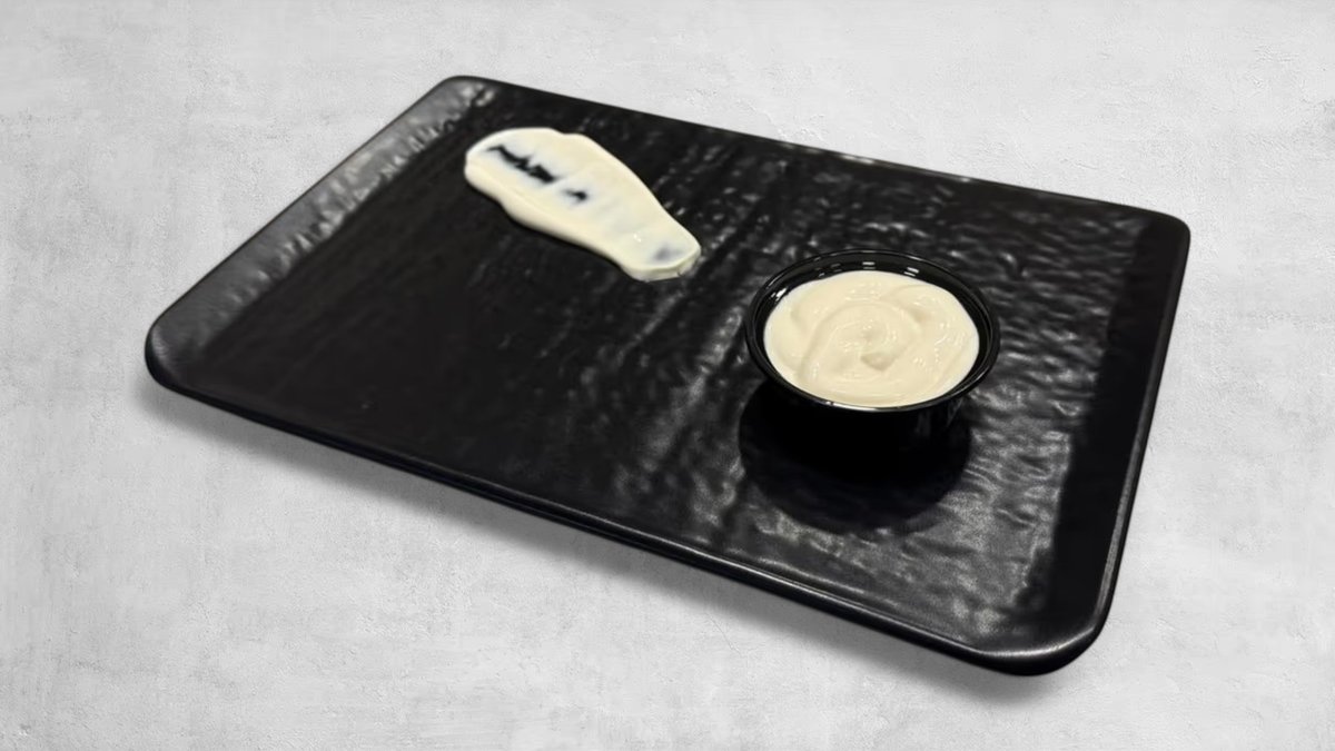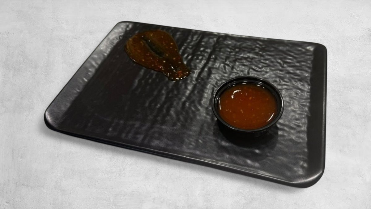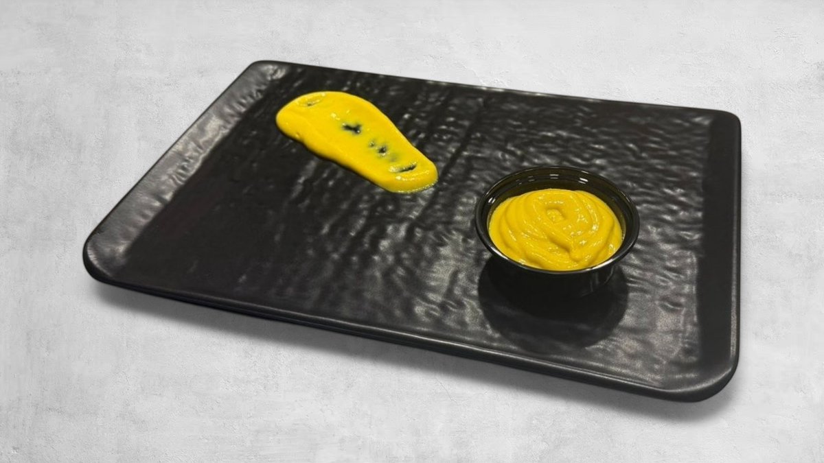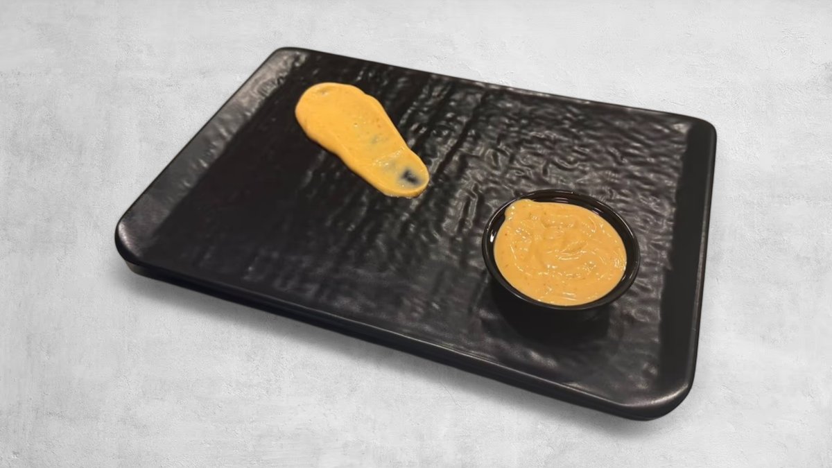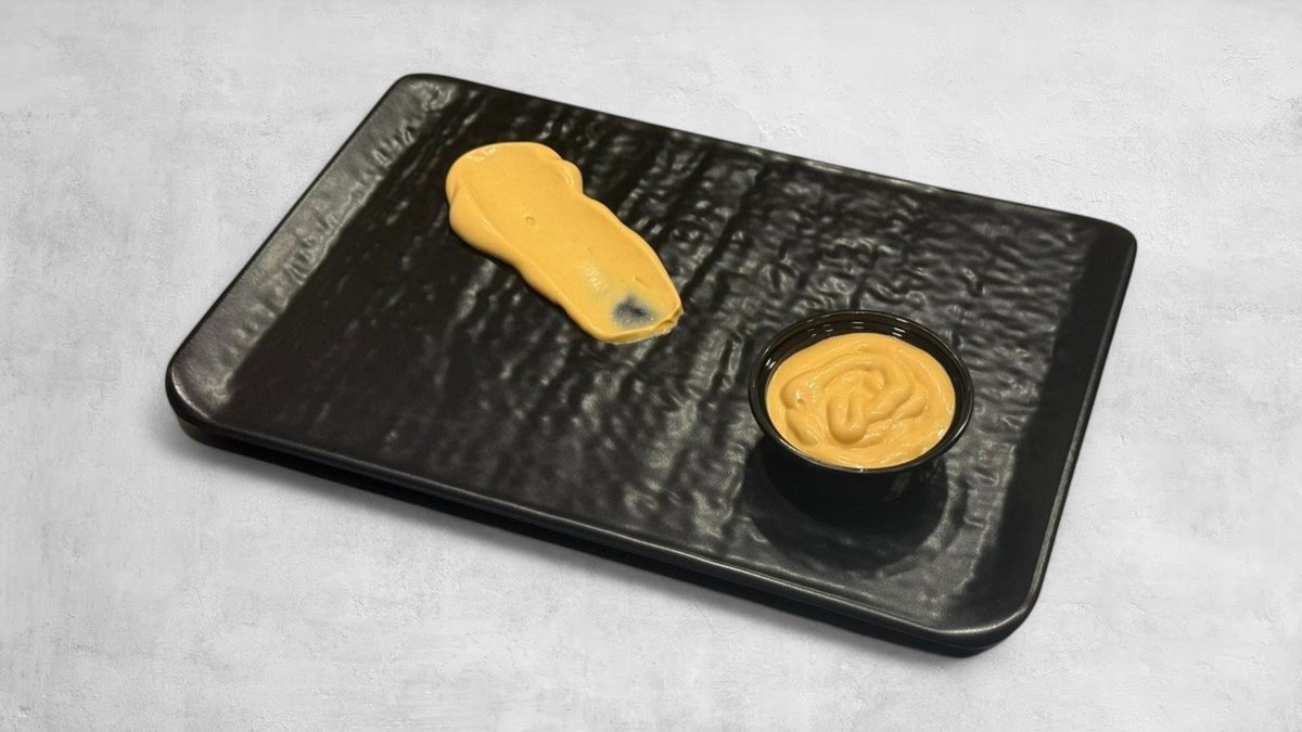 Συνοδεύεται από πατάτες τηγανητές deluxe και μουσταρδολέμονο