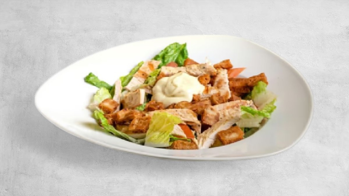 Σαλάτα με μαρούλι, iceberg, κοτόπουλο, καλαμπόκι, κρουτόν, παρμεζάνα & Caesar`s σως