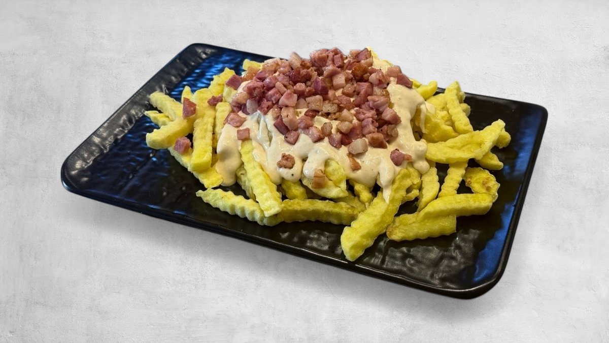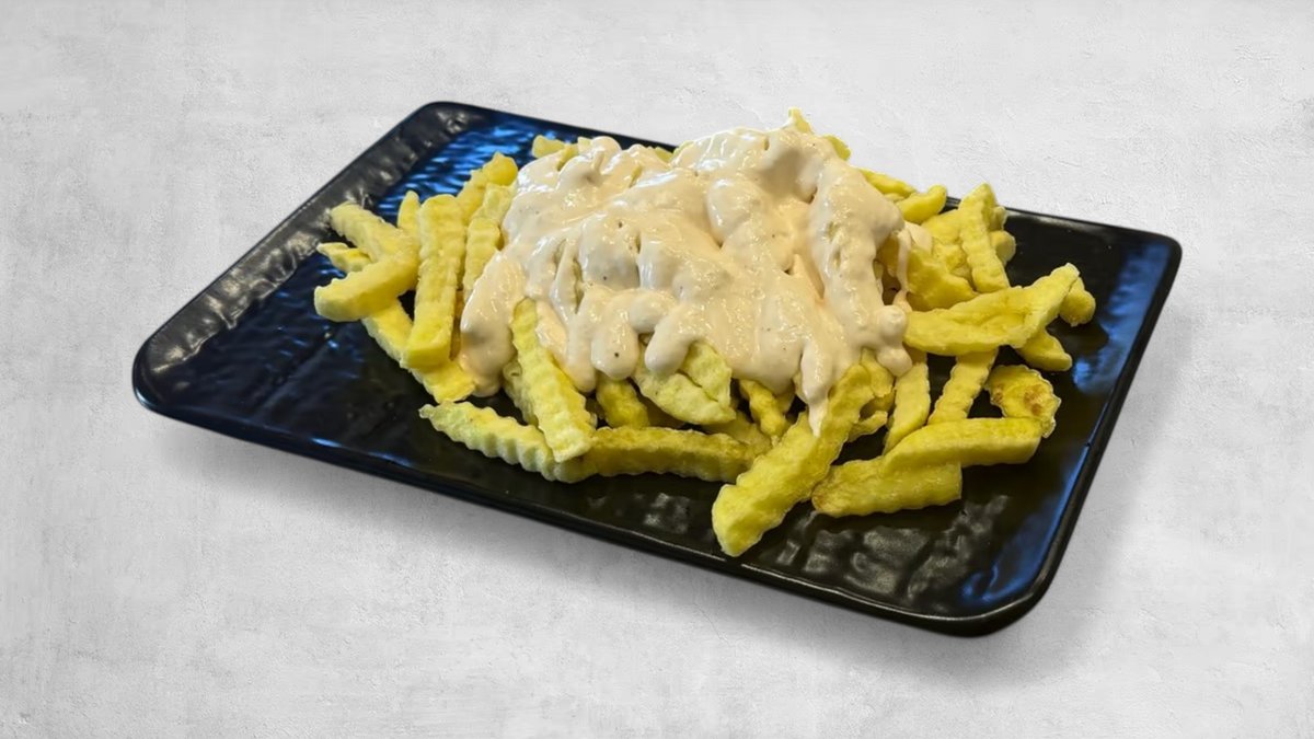 Tηγανητές Πατάτες Crinkle με Parmesan sauce και Μπέικον