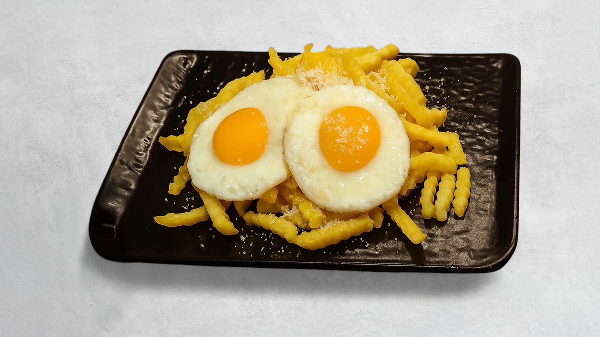 Tηγανητές Πατάτες Crinkle με 2 αβγά και τριμμένη παρμεζάνα
