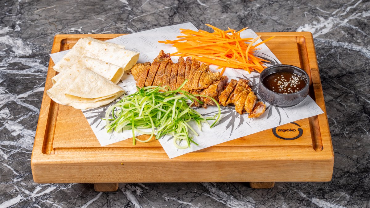 Με τραγανή πάπια, κεράσι, plum sauce και σουσάμι