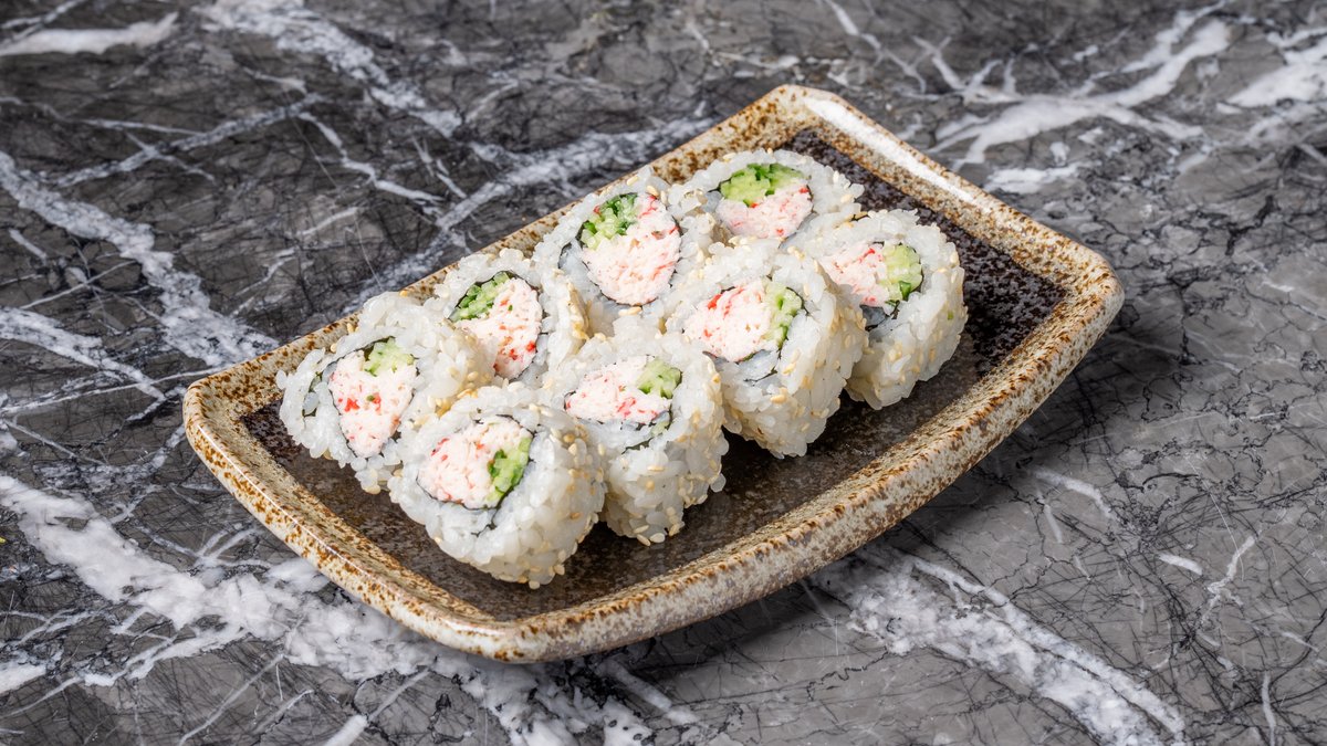 Uramaki. Με καβούρι surimi, ααγγούρι και σουσάμι