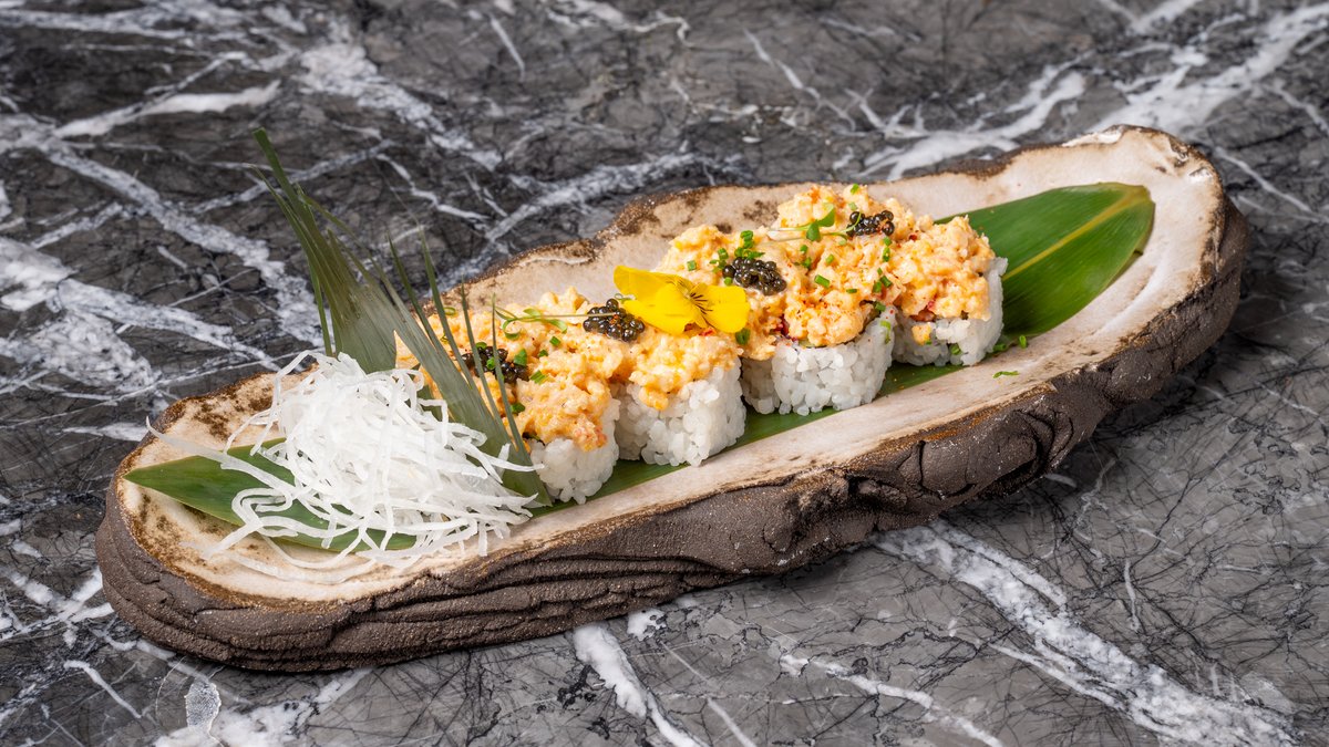 Με πικάντικο σολομό, αβοκάντο, ελαφρώς καψαλισμένο σολομό, ikura, σχοινόπρασο και spicy mayo