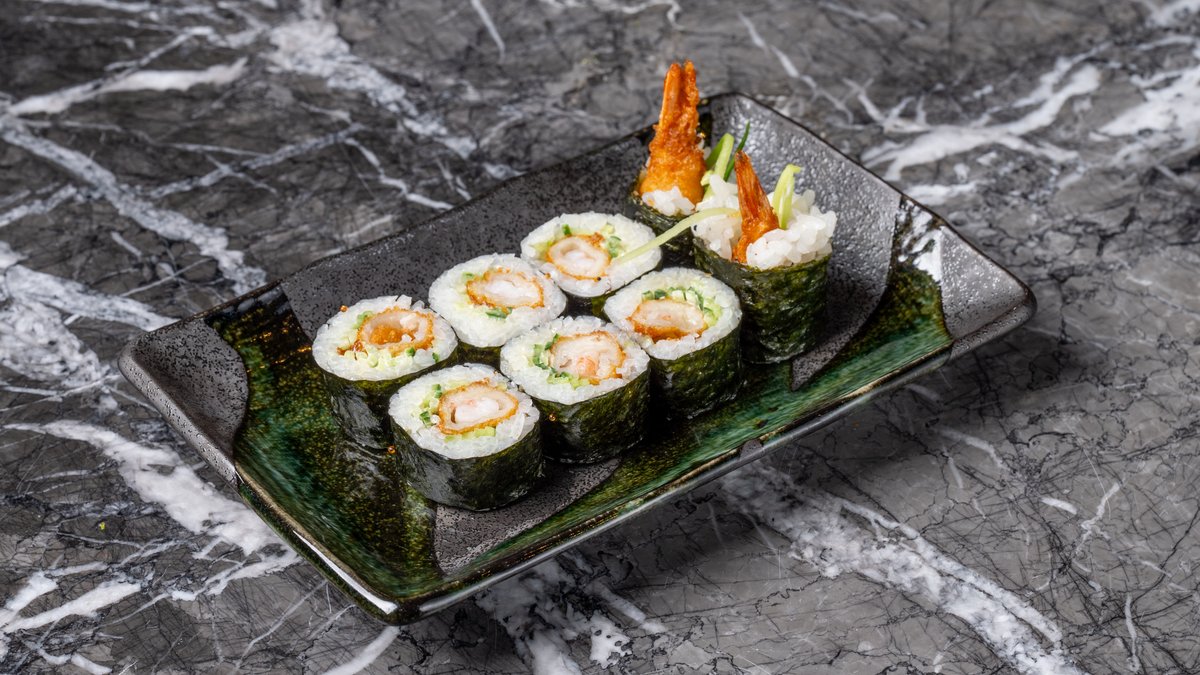 Hosomaki. Με γαρίδα tempura, αγγούρι και μαγιονέζα