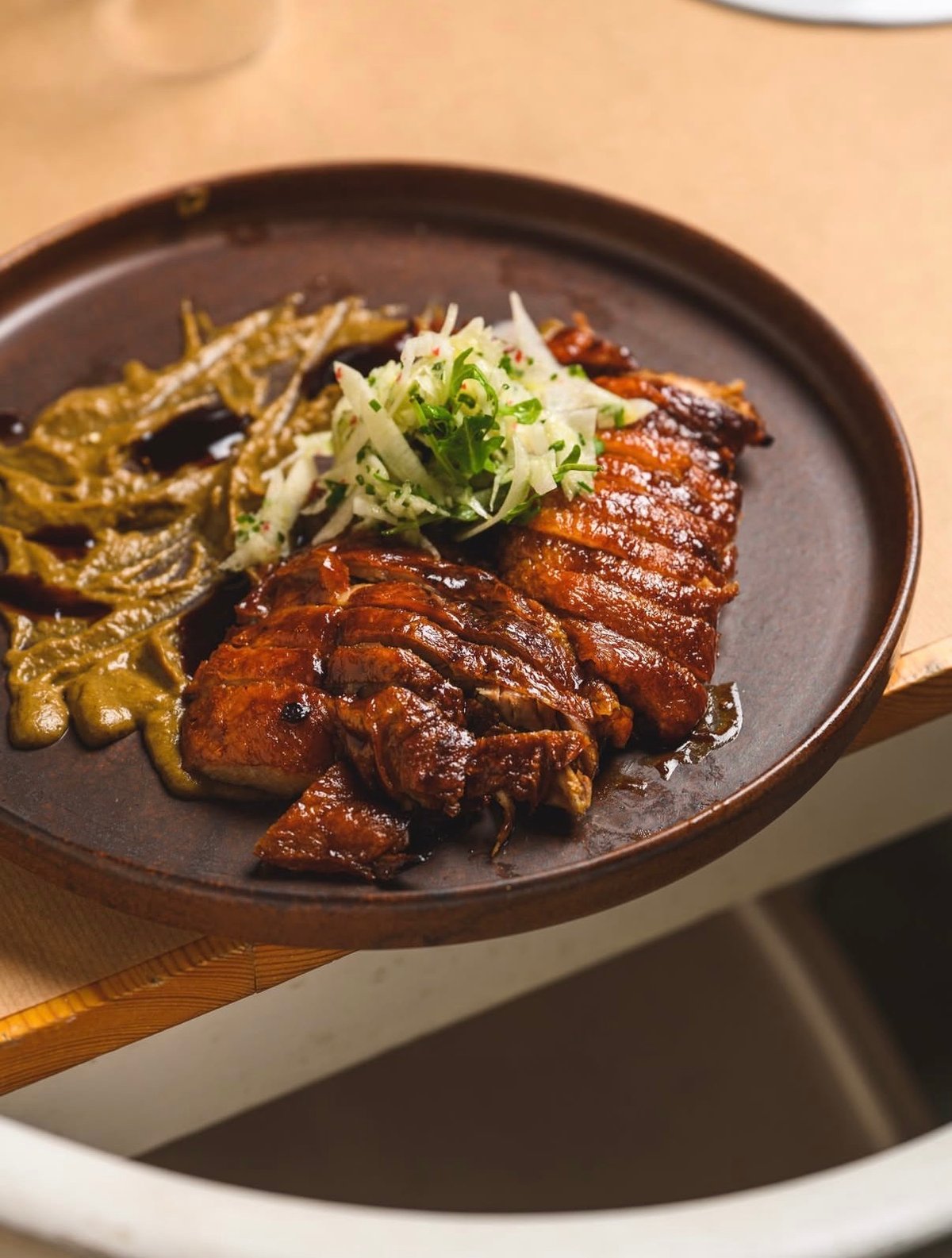 Πάπια ψητή με Πουρέ Μανιταριου και Γλασο
