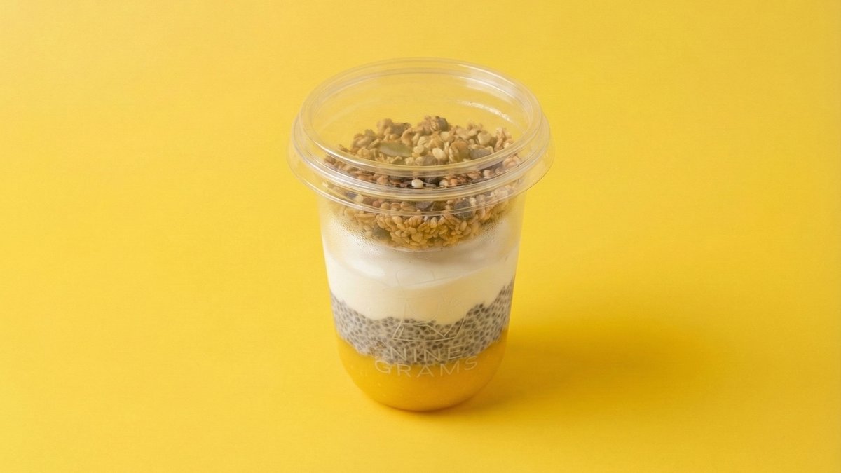 Chia pudding με γιαούρτι, φυσικό πουρέ Πορτοκαλιού και χειροποίητη Granola με κομμάτια σοκολάτας