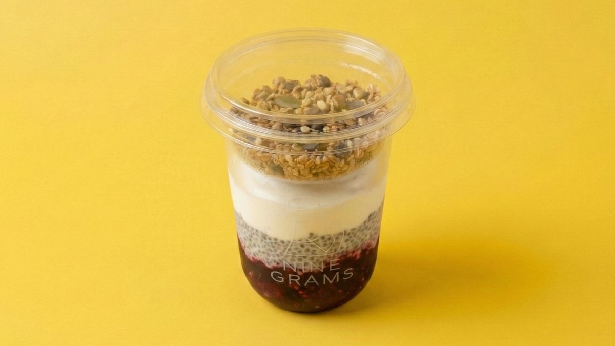 Chia pudding με γιαούρτι, φυσικό πουρέ φρούτων του δάσους και χειροποίητη Granola με κομμάτια σοκολάτας