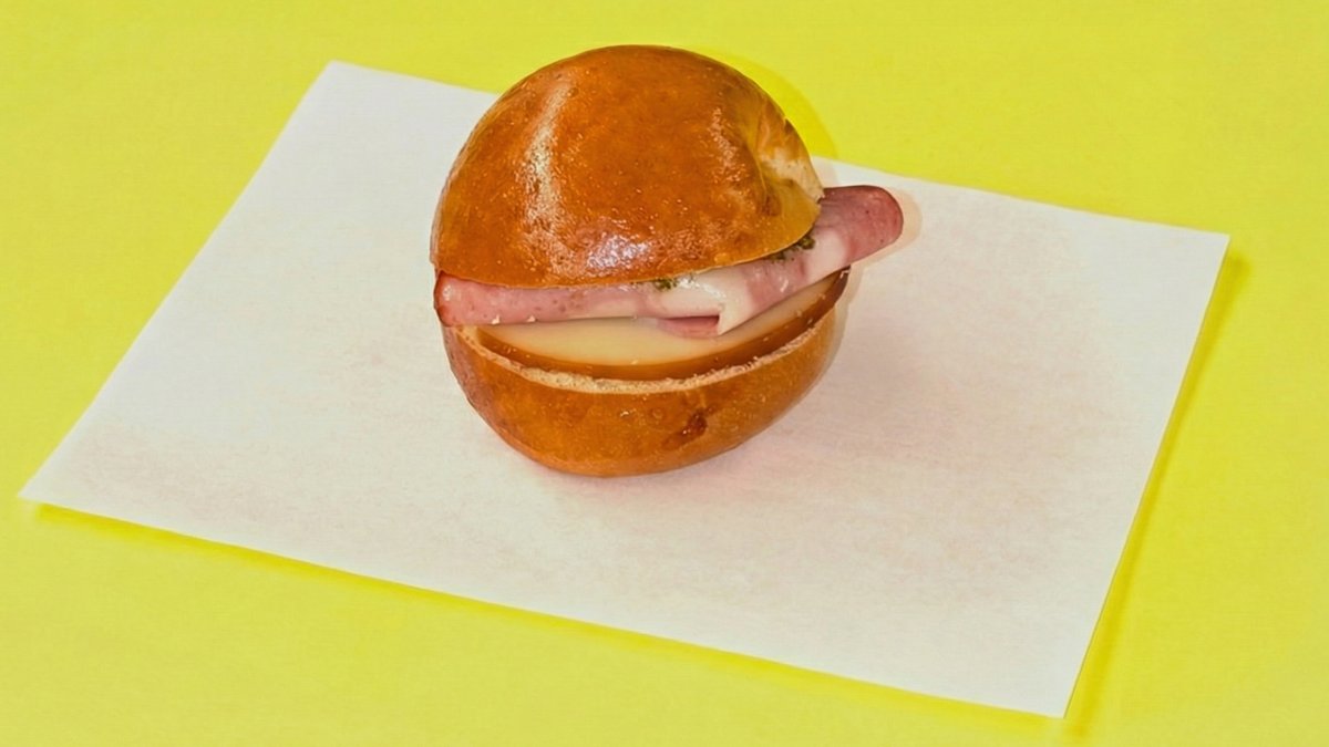 Χειροποίητο mini brioche με πέστο ρόκας και βασιλικού, μορταδέλα και καπνιστό κίτρινο τυρί