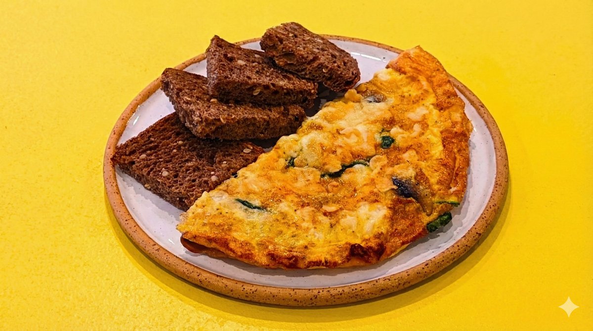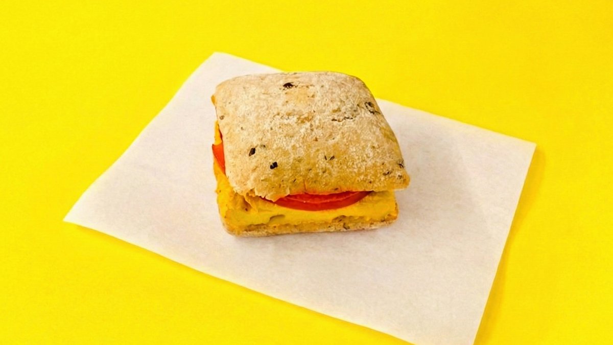 ομελέτα, ντομάτα, spicy μαγιονέζα.