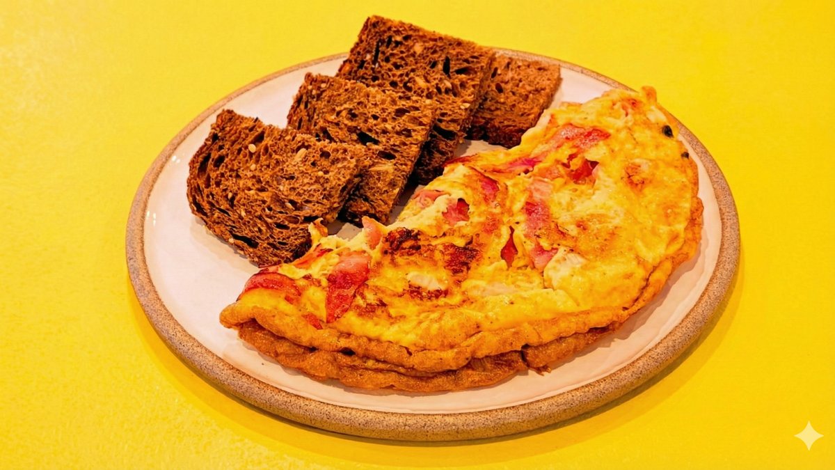 Ομελέτα (3 αυγά) κοτόπουλο, μπέικον, gouda, ντοματίνια.