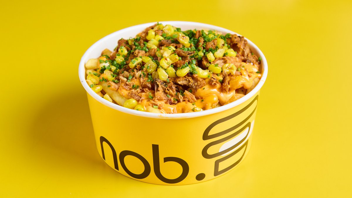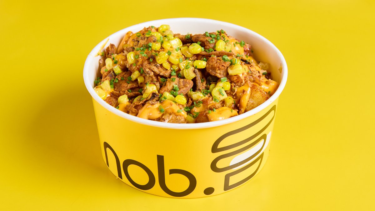 Με nduja μαγιονέζα, τραγανά μανιτάρια και τραγανό κρεμμύδι, καλαμπόκι και σχοινόπρασο