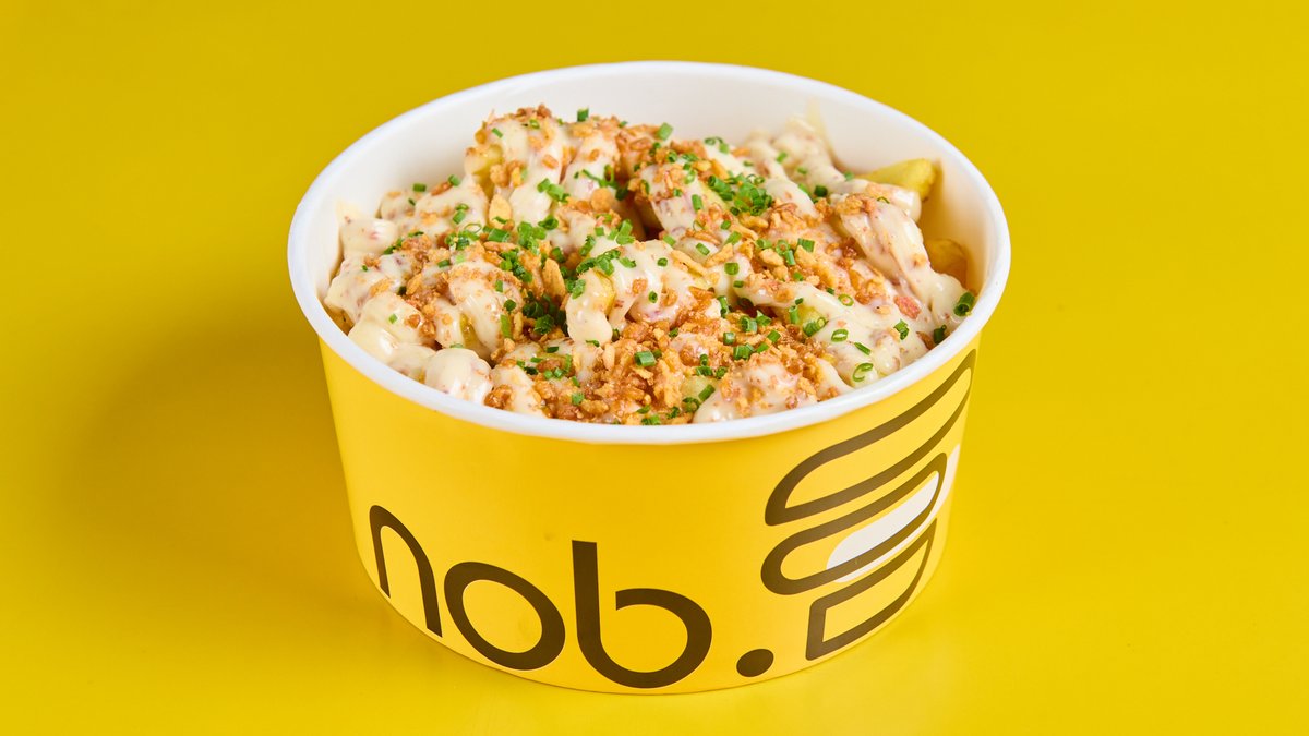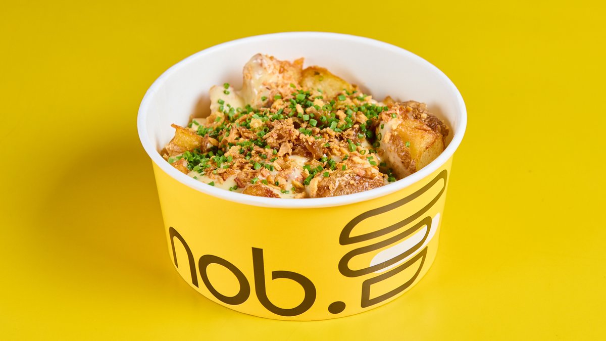 Πατάτες Βραχάκια με Μπεσαμέλ Τσένταρ, Ραγού Κρεμμυδιού, Crispy Bacon, Chives